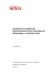 (2024)Syftet med mitt examensarbete är att få en bättre förståelse för och inblick i graviditeter hos intellektuell funktionsnedsatta kvinnor samt mödrahälsovårdens betydelse för dem. Frågeställningarna är: Vilka upplevelser av ... -