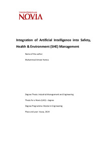 (2025)This thesis discusses the integration of artificial intelligence (AI) into Safety, Health and Environment (SHE) management through the practices, digital preparedness as well as the perceptions of four case companies in ... -