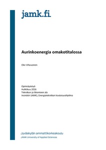 (Jyväskylän ammattikorkeakoulu, 2018)Aurinkoenergialla on suuri kasvupotentiaali Suomessa. Aurinkoenergian tuotantokapasiteetin kasvua on hidastanut väärä yleiskäsitys aurinkoenergian sopimattomuudesta Suomen pohjoiseen sijaintiin, vaikeasti ennustettavissa ... -