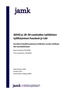 (2023)Opinnäytetyön tarkoituksena oli tarkastella ADHD:n tuomia haasteita 18–30-vuotiailla henkilöillä ja millaisia palveluita työllisyyden kuntakokeilulla on käytettävissä näiden henkilöiden tukemiseen. Opinnäytetyön ensimmäisellä ... -