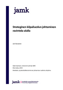 (2025)Ravintola-ala toimii jatkuvasti muuttuvassa toimintaympäristössä, jossa strategisen kilpailuedun rakentaminen on noussut keskeiseksi menestystekijäksi. Muuttuva toimintaympäristö edellyttää ravintola-alan yrityksiltä ... -