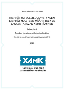 (2026)Opinnäytetyössä kehitettiin kierrätysteollisuusyritykselle kierrätysasteen laskentamalli, joka tukee yrityksen toimintaa ja vastaa EU:n ja kansallisia velvoitteita. Kierrätysaste on keskeinen kiertotalouden indikaattori ... -