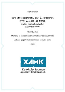 Tämän opinnäytetyön perusajatuksena oli uuden asiakaslähtöisen matkailutuotteen luominen. Ensisijaisena tavoitteena oli tuotteistaa yhden päivän kestävä kyläkierros Savitaipaleen, Lemin ja Luumäen matkailupalvelutarjonnasta ...