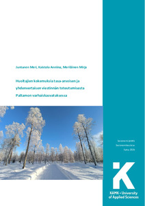 (2025)Tämä opinnäytetyö tehtiin toimeksiantona Vaalan kotisairaalalle. Vaalan kotisairaala toimii Pohjois-Pohjanmaan hyvinvointialueella. Käytämme tässä työssä hyvinvointialueesta puhuessamme lyhennettä Pohde. Opinnäytetyön ... -