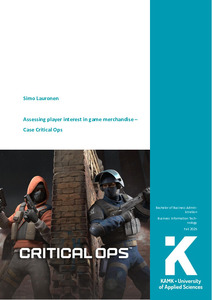 (2025)Opinnäytetyön tarkoitus oli arvioida Critical Ops -mobiilipelin pelaajakannan kiinnostusta pelioheistuotteita kohtaan. Työ tehtiin toimeksiantona Critical Forcelle, ja tutkimustyö käynnistettiin keväällä 2025 tarkoituksena ... -