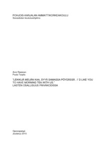 ”LEIKKIJÄ MEIJÄN KAA, SYYÄ SAMASSA PÖYDÄSSÄ . I’ D LIKE YOU TO HAVE MORNING TEA WITH US.” LASTEN OSALLISUUS PÄIVÄKODISSA
