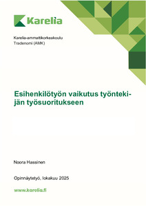 (2025)Opinnäytetyön tavoitteena oli selvittää, että mitä alisuoriutuminen on ja kuinka esihenkilötyöllä voidaan tukea työntekijän työssä suoriutumista. Lisäksi selvitettiin työhyvinvoinnin, säännöllisen palautteenannon ja ... -