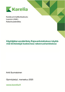 (2025)Tämä opinnäytetyö käsittelee käyttäjätarvemäärittelyä Rajavartiolaitoksen rakennushankkeissa. Aiheen tarkastelussa keskityttiin hankkeen eri vaiheissa tapahtuvaan yhteistyöhön Rajavartiolaitoksen, Senaatti-kiinteistöjen ... -
