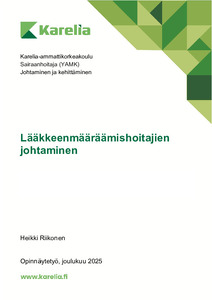 (2025)Tiivistelmä Lääkkeenmääräämishoitajien johtaminen on keskeisessä roolissa lääkkeenmääräämis-hoitajien työnkuvan uudistamisessa. Esihenkilön on tärkeä ymmärtää mitä lääkkeen-määräämis sairaanhoitajat saavat tehdä ja millä ... -