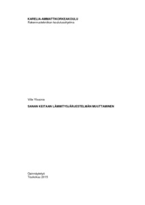 (Karelia-ammattikorkeakoulu (Pohjois-Karjalan ammattikorkeakoulu), 2015)Tämä opinnäytetyö on tehty Joensuun perinteisen Sanan ystävät ry:lle heidän tilauksestaan. Työssä on tutkittu heidän omistaman kurssi- ja leirikeskuksen lämmitysjärjestelmää ja keskuksen rakennusten rakenteita. Näiden ... -