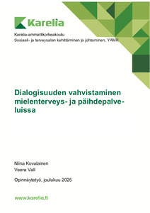 (2025)Tämä opinnäytetyö käsittelee dialogisuuden vahvistamista mielenterveys- ja päihdepalveluissa Pohjois-Karjalan hyvinvointialueella. Muuttuvat toimintaympäristöt ja kasvavat asiakasmäärät edellyttävät jatkuvaa palveluiden ... -