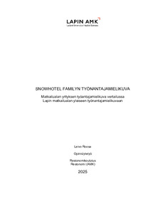 (2025)Opinnäytetyön aiheena oli Snowhotel Familyn työnantajamielikuvan tutkiminen ja tämän vertaaminen Lapin matkailualan yleiseen työnantajamielikuvaan. Toimeksiantajana oli Snowhotel Family, joka on rovaniemeläinen matkailualan ... -