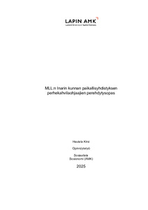 (2025)Opinnäytetyön tarkoituksena oli suunnitella ja toteuttaa Mannerheimin Lastensuojeluliiton (MLL) Inarin kunnan paikallisyhdistyksen tarpeita vastaava vapaaehtoisten perhekahvilaohjaajien perehdytysopas. Tavoitteena oli ... -