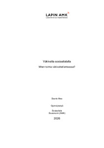 (2026)Opinnäytetyön tarkoituksena oli kuvata, miten sosiaalialan asiakastyön väkivaltatilanteet kehittyvät, millaisia keinoja työntekijällä on tilanteessa toimimiseen ja mitä tulee tapahtua heti väkivaltatilanteen jälkeen. ... -