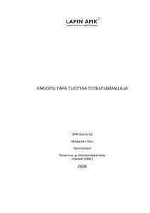 (2026)Työn aiheena oli vakioitu tapa tuottaa koneohjauksessa käytettäviä toteutusmalleja GRK Suomi Oy:lle. Tavoitteena oli määritellä todennettavat minimivaatimukset toteutusmallin tietosisällölle, yhtenäistää nimeäminen ja ... -