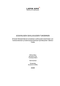 (2026)Tämä opinnäytetyö tarkastelee lasten sosiaalisen osallisuuden tukemista varhaiskasvatuksessa ja lastensuojelulaitoksissa. Sosiaalinen osallisuus on keskeinen osa lapsen hyvinvointia sekä kehitystä, ja sen vahvistaminen voi ... -