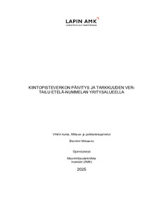 (2025)Tässä opinnäytetyössä tutkittiin Etelä-Nummelan yritysalueen kiintopisteverkon päivitystä ja tarkkuuden vertailua. Työn tilaajana toimi Vihdin kunta. Työn tavoitteena oli tuottaa ajantasainen kiintopisteverkko, joka täyttää ...