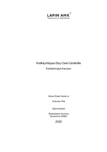 (2025)Opinnäytetyön tarkoituksena oli tehdä kotikäyntiopas Day Care Centerin työntekijöille. Day Care Center on päiväkoti lapsille, joilla on erityisiä tuen tarpeita, ja se on osa Keniassa toimivan hyväntekeväisyysjärjestö Home ... -