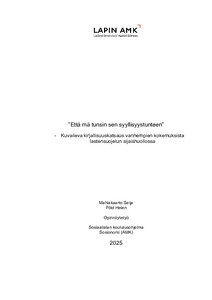 (2025)Tämän opinnäytetyön tarkoituksena oli tuoda esiin vanhempien kokemuksia tilanteissa, joissa lapsi on huostaanotettu ja sijoitettu kodin ulkopuolelle, sekä syventää käsitystä sijaishuollon prosessista vanhempien näkökulmasta ... -