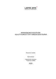 (2025)Tässä opinnäytetyössä selvitettiin, miten markkinointia voidaan hyödyntää kestävän kuluttajakäyttäytymisen edistämisessä. Tavoitteena oli myös selvittää kuinka markkinointiviestit voivat vaikuttaa kuluttajien motivaatioon ... -