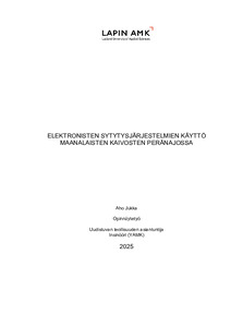 (2025)Tämän opinnäytetyön tavoitteena oli selvittää elektronisten sytytysjärjestelmien käytön hyötyjä maanalaisten kaivosten peränajossa verrattuna perinteisiin impulssiletkusytytysjärjestelmiin. Tutkimuksen lähtökohtana oli ... -