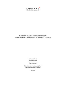 (2026)Opinnäytetyössä tarkasteltiin männyn uudistamismenetelmiä, niihin liittyviä haasteita ja uudistamisen kannattavuutta Lapin olosuhteissa. Tavoitteena oli selvittää, miten istutus, kylvö ja luontainen uudistaminen onnistuvat ... -