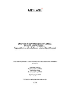 (2026)Opinnäytetyö käsittelee ennakointiosaamisen kehittämistä työurajohtamisessa taloushallinnon asiantuntijayrityksessä, osana yrityksen johtamisen strategiaa. Työssä selvitettiin, mitkä käytännön toimenpiteet auttavat ... -