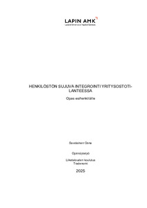 (2025)Tämän toiminnallisen opinnäytetyön tarkoituksena oli tunnistaa keskeiset tekijät, jotka vaikuttavat henkilöstön onnistuneeseen integraatioon yritysoston jälkeen, sekä kehittää esihenkilötyötä tukevia käytäntöjä ja malleja ... -