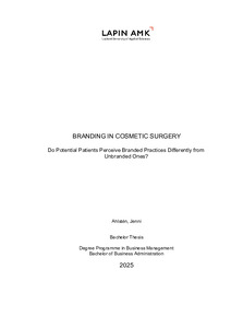 (2025)Tämän opinnäytetyön tavoitteena oli tutkia, miten johdonmukainen brändäys vaikuttaa potentiaalisten potilaiden käsityksiin kauneuskirurgian klinikoista. Tutkimuksessa selvitettiin, parantaako ammattimainen visuaalinen ja ... -