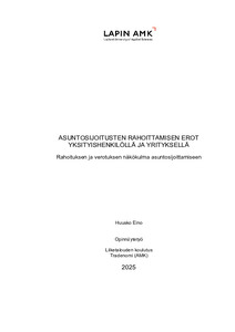 (2025)Opinnäytetyössä vertailtiin asuntosijoittamisen kannattavuutta yksityishenkilön ja osakeyhtiön näkökulmasta erityisesti rahoituksen ja verotuksen osalta. Työn tarkoituksena oli selvittää, milloin asuntosijoittaminen ... -