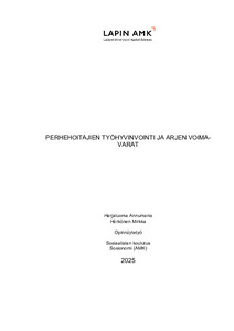(2025)Opinnäytetyössämme tarkastelemme perhehoitajien työhyvinvointia ja jaksamista. Kuvaamme perhehoitajan työn erityispiirteitä, kuten jatkuvaa vastuuta, työn ja kodin rajojen hämärtymistä sekä emotionaalista kuormitusta. ... -