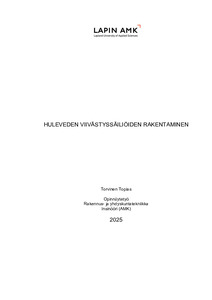 (2025)Opinnäytetyön tarkoituksena oli käydä läpi huleveden viivytysjärjestelmiä ja keskittyä niiden rakentamiseen. Viivytysjärjestelmät tulevat yleistymään tulevaisuuden rakentamisessa ja aiheesta löytyy vähän tietoa. Destia Oy ... -