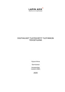 (2025)Opinnäytetyön aiheena oli tuotannon tiedonkulun ja tehokkuuden kehittäminen visuaalisen tuotekortin avulla Pipelife Finland Oy:n Haaparannan tuotantoyksikössä. Työn tavoitteena oli luoda tuotekohtainen, helposti saavutettava ... -