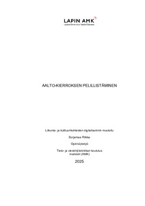 (2025)Opinnäytetyön aiheena oli Aalto-kierroksen pelillistäminen. Tavoitteena oli pelillistää ja toteuttaa Rovaniemen kaupunginkirjaston Aalto-kierros alustariippumattomana sovelluksena. Aiemmin Alvar Aallon suunnitteleman ... -