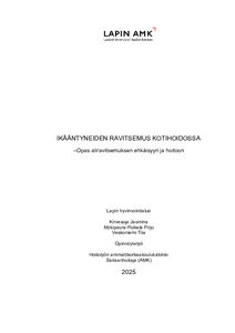 (2025)Väestön ikääntyessä vajaaravitsemus on kotihoidossa yleinen ja alitunnistettu riski, joka heikentää toimintakykyä ja lisää palvelujen tarvetta. Tämän opinnäytetyön tarkoituksena oli tuottaa Lapin hyvinvointialueen kotihoidon ...