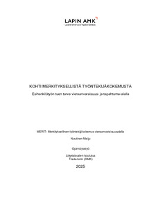 (2025)Tämän opinnäytetyön tarkoituksena oli tutkia, miten työn merkityksellisyyttä voidaan vahvistaa vieraanvaraisuus- ja tapahtuma-alalla sekä millaista tukea esihenkilöt tarvitsevat merkityksellisyyden johtamisessa. Alalla ... -