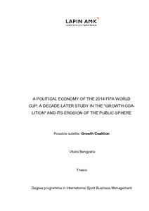 (2025)This thesis will examine the political economy of the 2014 FIFA World Cup in Brazil, ten years into the phenomenon. It investigates the role played by FIFA, the Brazilian state and corporate capital as a “growth coalition” ... -