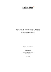 (2025)Metsätilan sukupolvenvaihdos on ajankohtainen aihe, sillä metsänomistajien ikärakenne Suomessa on melko korkea. Tämän opinnäytetyön tavoitteena oli tarkastella millä eri tavoin metsätilan sukupolvenvaihdos voidaan toteuttaa. ... -