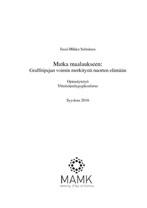 (Mikkelin ammattikorkeakoulu, 2016)Tutkimuksen tarkoituksena oli kartoittaa viiden nuoren kokemuksia vuonna 2015 järjestetystä graffitipajasta. Graf-fitipaja on yksi kulttuurisen nuorisotyön sosiaalipedagogista työmuodoista. Kulttuurisen nuorisotyön tarkoitus ... -