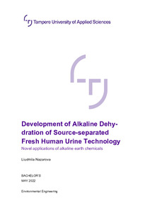 (2023)Alkaline dehydration is one of the technologies that can increase the amount of plant-essential nutrients in urine while also decreasing its volume to create dry urine-based fertilizers. The aim of this thesis was to ... -