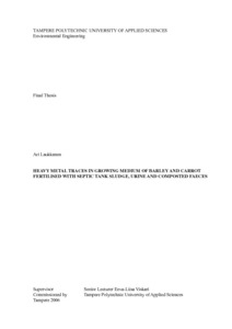 Heavy metal traces in growing medium of barley and carrot fertilised with septic tank sludge, urine and composted faeces