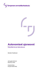 Opinnäytetyössä perehdyttiin autonomisten ajoneuvojen nykytilanteeseen ja tulevaisuuden näkymiin sekä koottiin havaittujen asioiden pohjalta ajantasainen tietopaketti automatisoiduista ajoneuvoista. Opinnäytetyössä tutkittiin ...