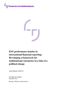 ESG performance metrics in international financial reporting : developing a framework for multinational enterprises in a time of a political change