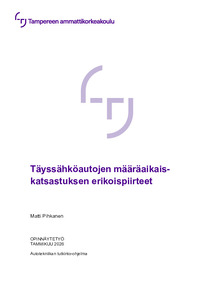 (2026)Opinnäytetyössä tutkittiin ja käsiteltiin täyssähköautojen määräaikaiskatsastuksen erikoispiirteitä, sekä huomioitavia seikkoja katsastustoimenpiteiden aikana. Teoriaosuudessa käsiteltiin lyhyesti täyssähköauton toiminta ... -