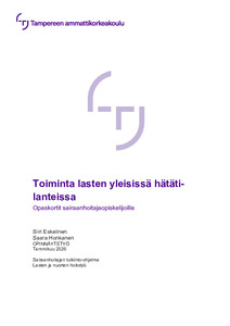 (2026)Tämä opinnäytetyö käsittelee toimintaa lasten yleisissä hätätilanteissa. Opinnäytetyön toiminnallisena tuotoksena syntyi opaskortit sairaanhoitajaopiskelijoille. Opaskorttien tavoitteena on varmistaa sairaanhoitajaopiskelijoiden ... -