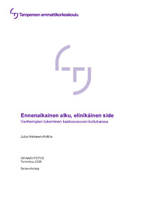 (2026)Opinnäytetyön tarkoituksena oli selvittää, millaisia haasteita vanhemmat kohtaavat keskosvauvan kotiutumisen yhteydessä sekä millainen tuki koetaan hyödylliseksi sairaalajakson ja kotiutumisvaiheen aikana. Opinnäytetyö ... -