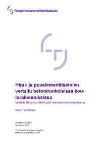 (2025)Tässä opinnäytetyössä tarkasteltiin hirsi- ja puuelementtiseinien eroavaisuuksia betonirunkoisissa koulukohteissa. Tarkoituksena oli erityisesti vertailla seinäkokonaisuuksien ominaisuuksia, kustannuksia, hyötyjä ja ... -