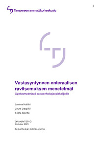 (2025)Opinnäytetyö käsittelee vastasyntyneen enteraalisen, eli ruuansulatuskanavaan annettavan, ravitsemuksen menetelmiä. Vastasyntyneillä enteraalinen ravitsemus saattaa olla tarpeen neurologisen ja fysiologisen kypsymättömyyden, ... -