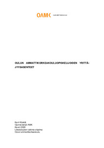 (2026)Tämän opinnäytetyön tarkoituksena oli tutkia Oulun ammattikorkeakoulun opiskelijoiden yrittäjyysasenteita ja kiinnostusta yrittäjyyttä kohtaan. Työn tavoitteena oli kartoittaa, mitkä tekijät vaikuttavat opiskelijoiden ...Avoin saatavuus / Open access / Öppen tillgång -