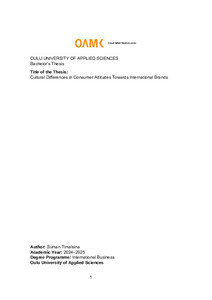 (2025)my study reveals that culture has a strong influence on consumer attitudes, and each influence is not consistent and predictable. In the case of internationally known brands, the trick is to achieve a steady international ...Avoin saatavuus / Open access / Öppen tillgång -
